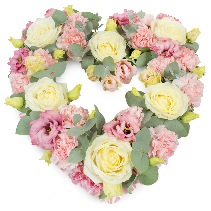 Celebrate a life with an exquisite blend of beauty and emotion. Our Memorial Floral Collection is thoughtfully designed with hand-selected, fresh blooms that make a profound statement. This bouquet includes luminous white roses, adorable pink carnations, and elegant pink lisianthus, all surrounded by gently aromatic eucalyptus leaves. The natural color harmony creates a soothing and unforgettable presentation.